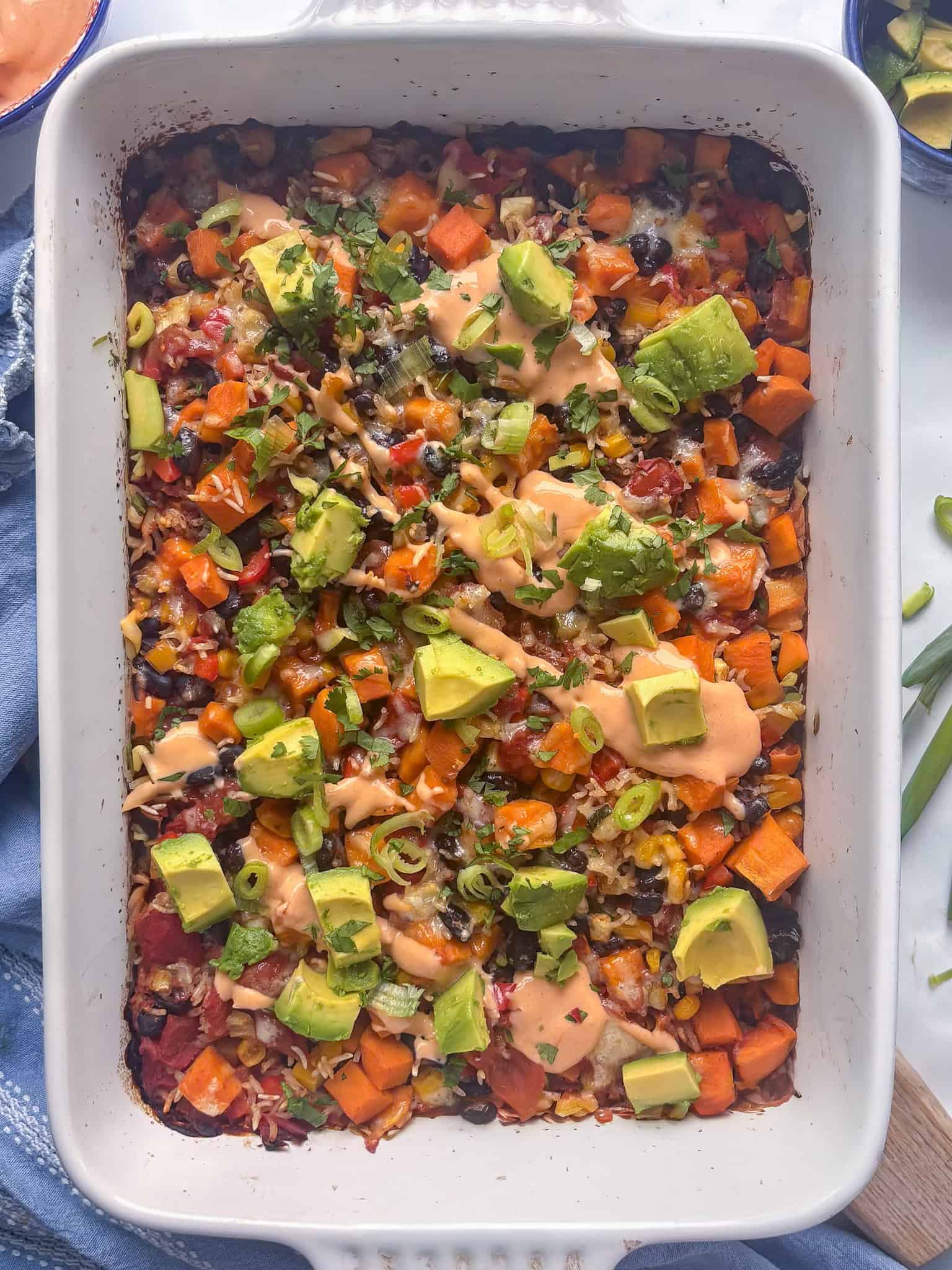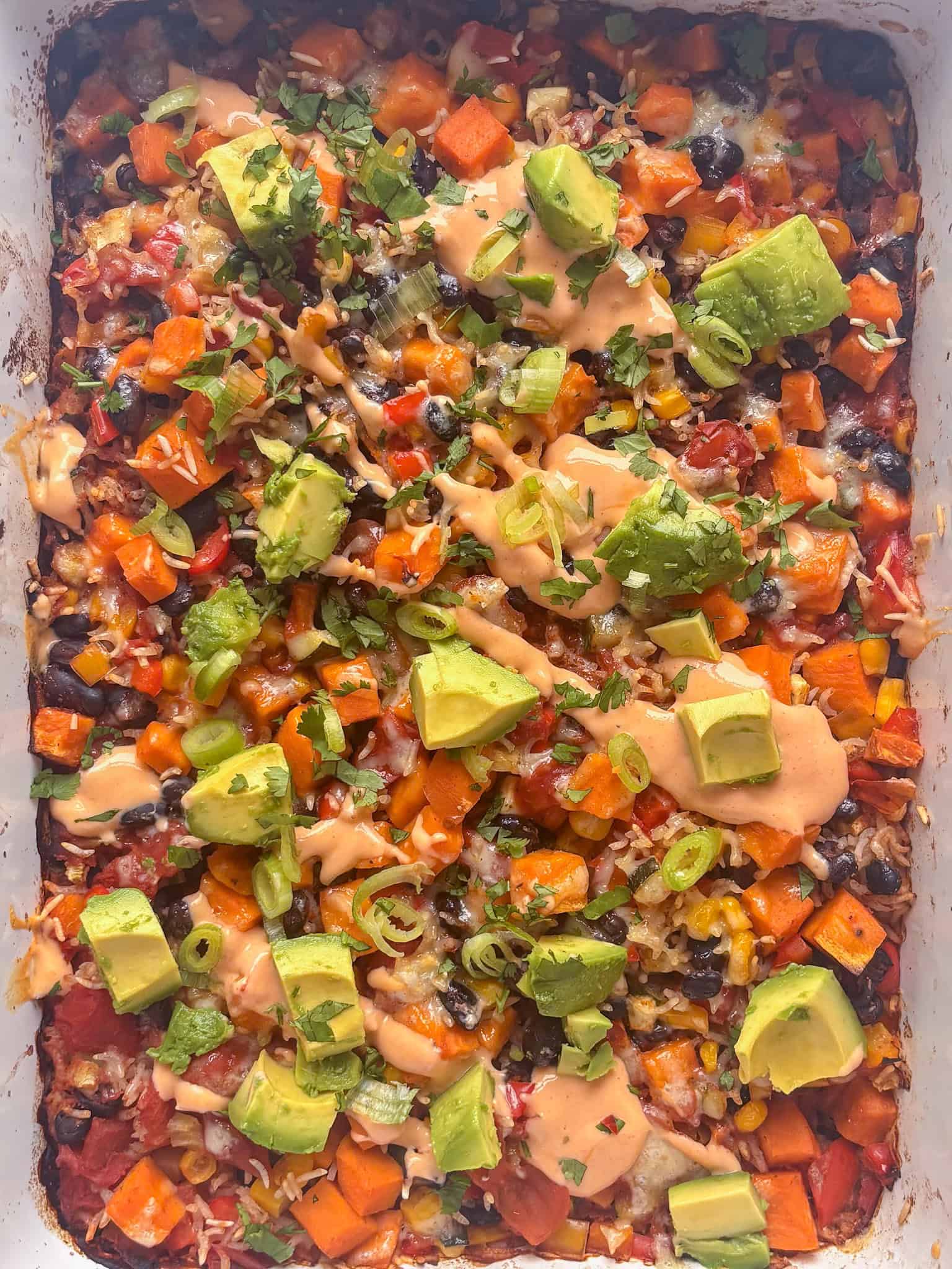 Yes! The base casserole is already vegan. Just swap the sour cream for a plant-based alternative or skip it entirely - the avocado provides enough creaminess on its own.