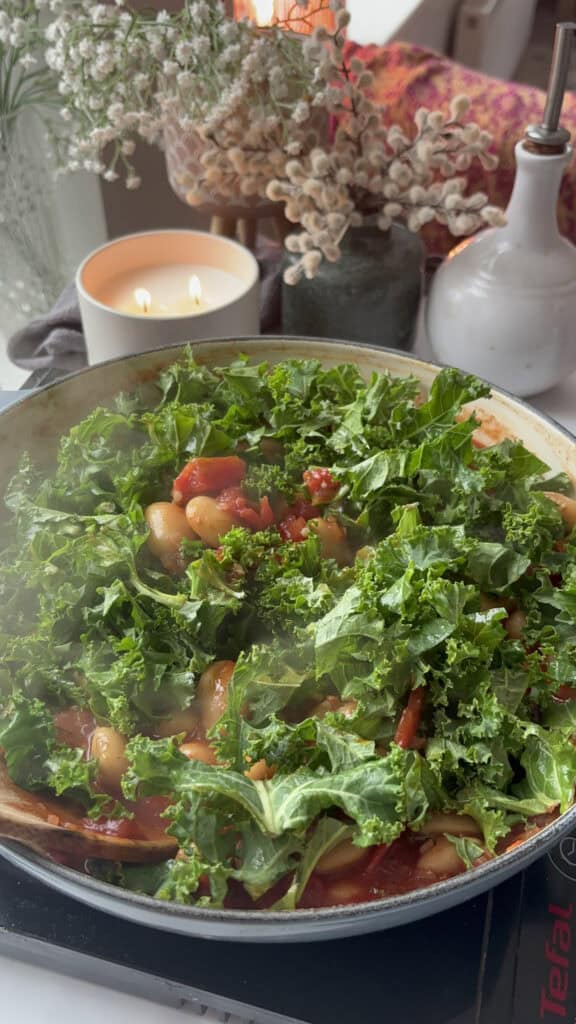 - Mashing some of the beans - For a thicker and slightly creamy consistency, take a spoon and mash a handful of butter beans into the sauce before adding the kale.