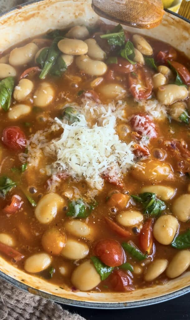 - Hard Cheese: Grate in some hard cheese, such as Pecorino or Parmesan, to help thicken the sauce and add some cheesy goodness. Omit this if you want a vegan butter bean stew.