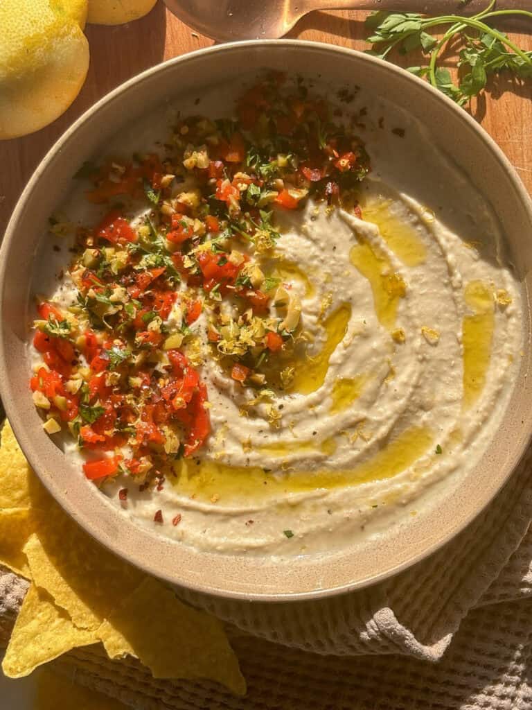 Red Pepper Feta Dip with Roasted Potatoes & Chickpeas
