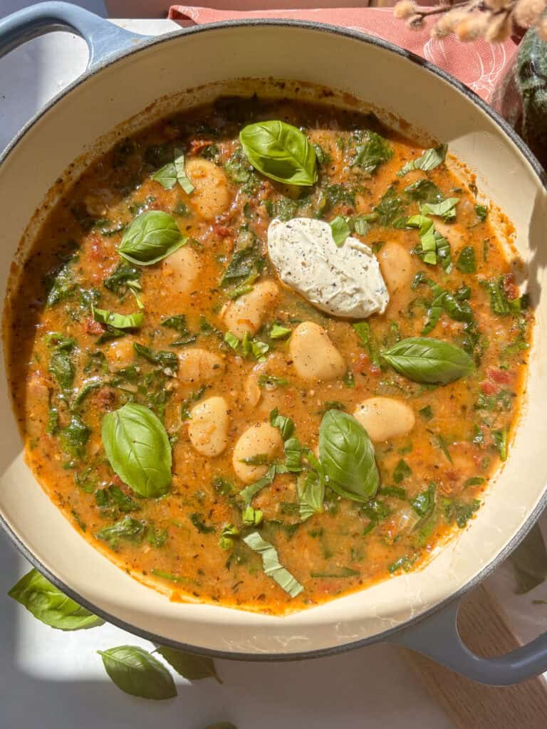 This easy creamy Tuscan butter bean soup is the perfect comforting and healthy dinner. It’s ready in less than 30 minutes and is perfect paired with crusty sourdough.