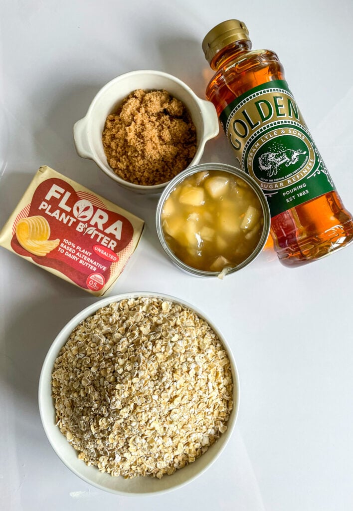 These apple flapjacks use canned apple filling to get that perfectly chewy, soft, and sweet texture, which means you can really enjoy these all year round! However, this recipe is also fabulous for using up fresh apples in the Autumn by making your own apple sauce and grating in fresh apples, too.