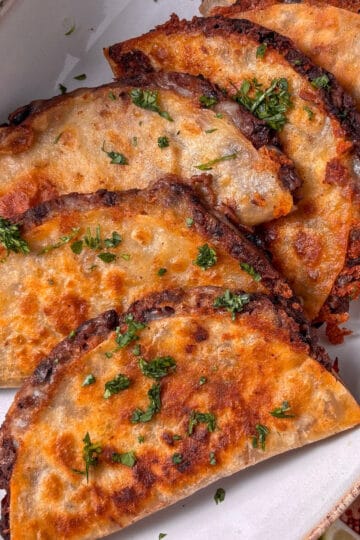 These crispy refried bean tacos are the perfect quick and easy - but super delicious - vegetarian dinner. Ready in under 30 minutes.