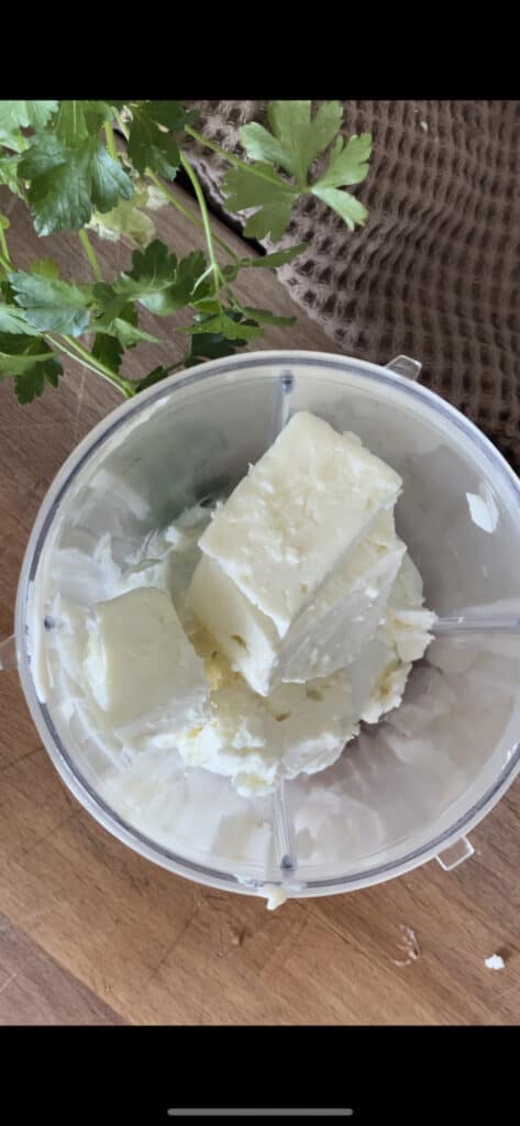 I add Greek yoghurt to the whipped feta to give it added creaminess and to neutralize the saltiness of the feta.