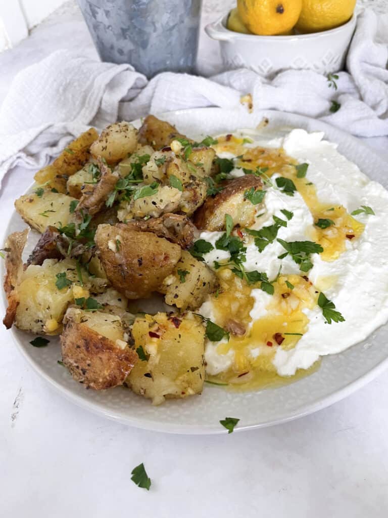 My viral Greek roasted potatoes and whipped feta small plate recipe!