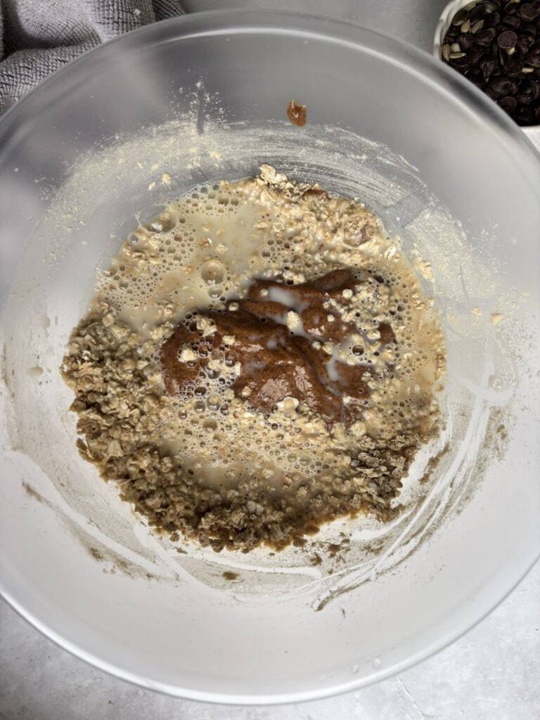 - Combine your rolled oats and pea protein powder in a large mixing bowl.