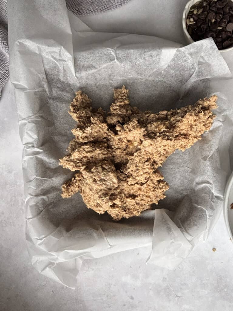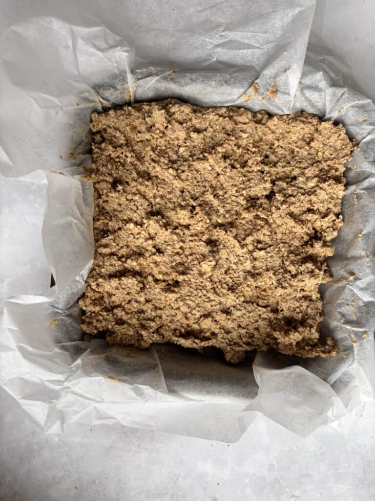 In terms of equipment, I recommend using a 7 x 7-inch baking tin for making your protein flapjacks and lining it with some baking paper so you can easily remove your flapjacks from the tin. Beyond that, you'll need a mixing bowl and spoon, and that's about it!
