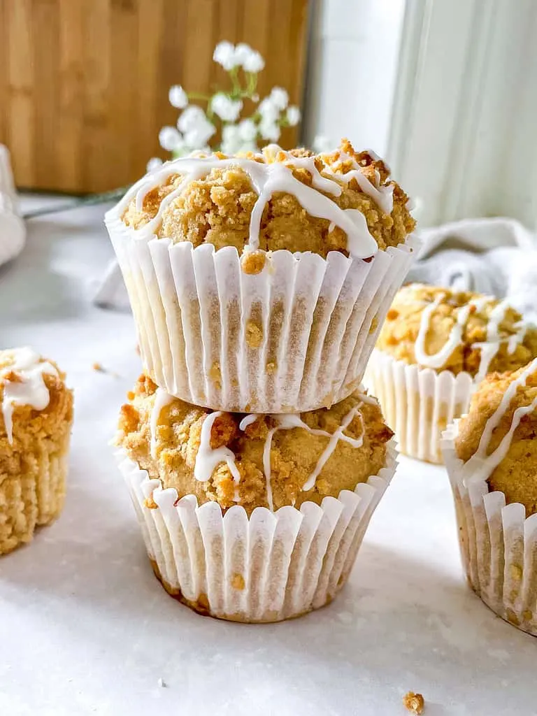 Spoon the batter evenly into your prepared muffin cases and scatter over your streusel topping. Pop them into the oven and bake for 20-25 minutes, or until a skewer inserted into the centre of a muffin comes out clean. Once they’re baked to perfection, allow the muffins to cool for around 10 minutes before turning them out onto a wire rack to cool completely.
