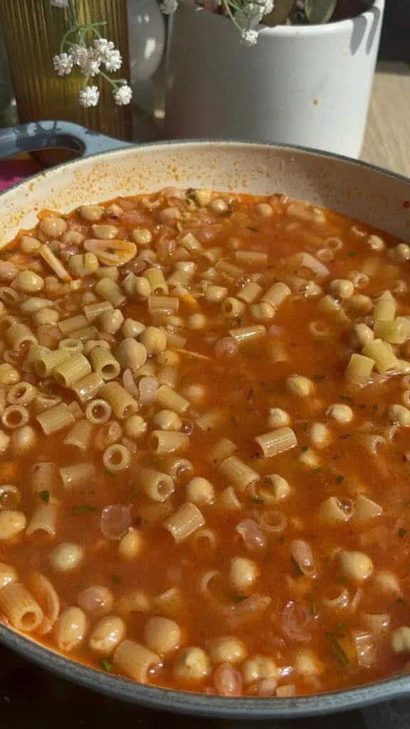 This easy, delicious pasta e ceci recipe (pasta with chickpeas) is a one-pot, homely, comforting classic. There is something incredibly appealing about finding simple, one-pot, vegetarian dishes that have been the staple of certain cultures and cuisines for generations. This Italian comfort food classic can be on the table within 20 minutes and enjoyed year-round.