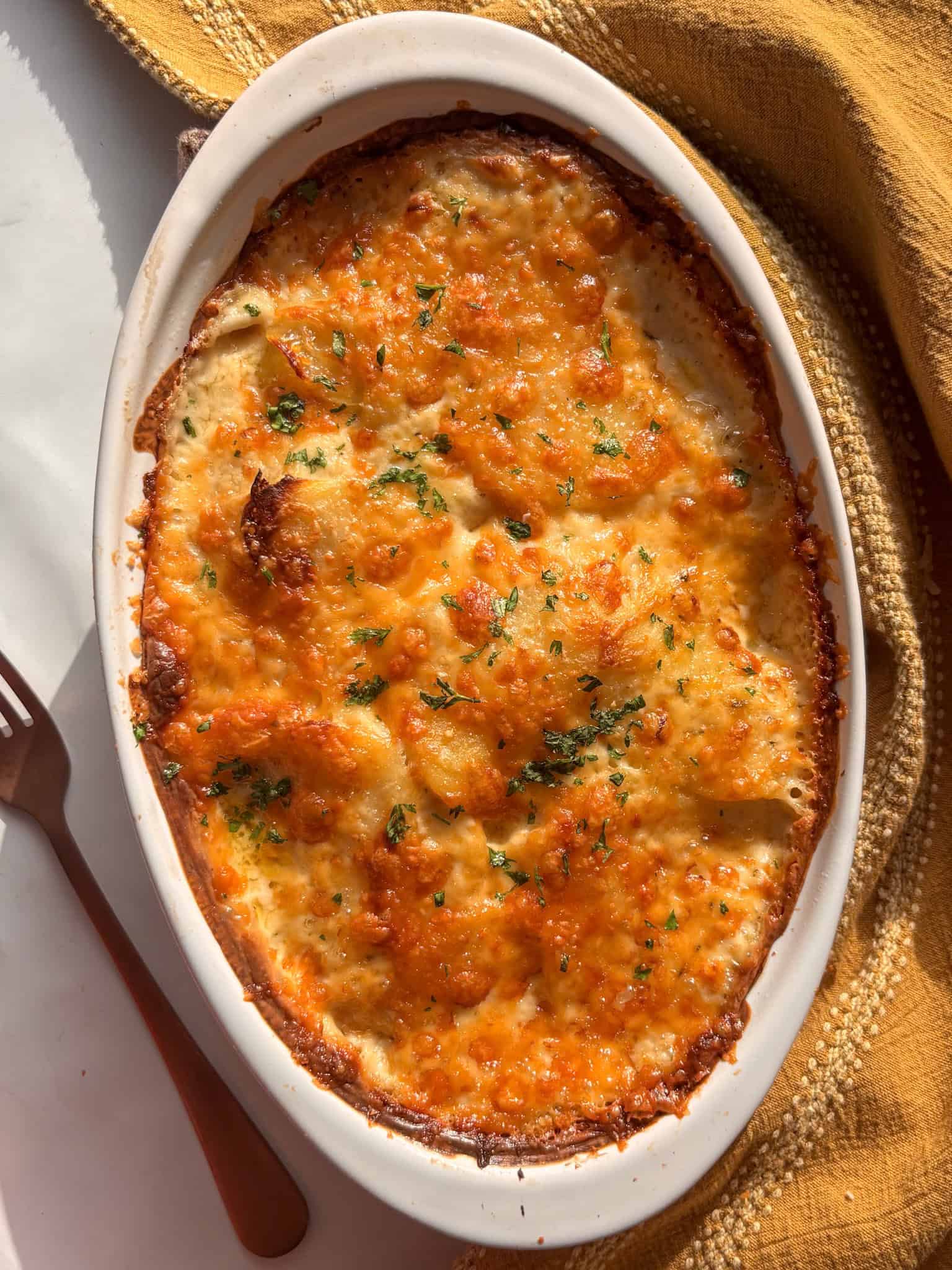 I've been able to test this recipe a lot as a result - tweaking the amount of creamy sauce, the amount of potatoes so it doesn't get too dense, and the amount of cheese and garlic for the perfect savory, indulgent sauce without feeling overly greasy or overwhelming.