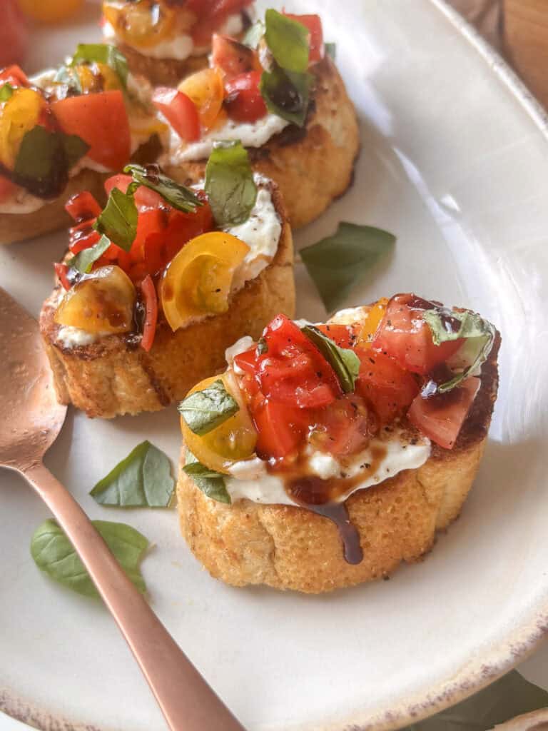 Serve bruschetta along with other sides such as a Greek Salad, a romesco dip, a light pasta dish such as this tomato gnocchi, some roasted green beans, or even an eggplant parmigiana.