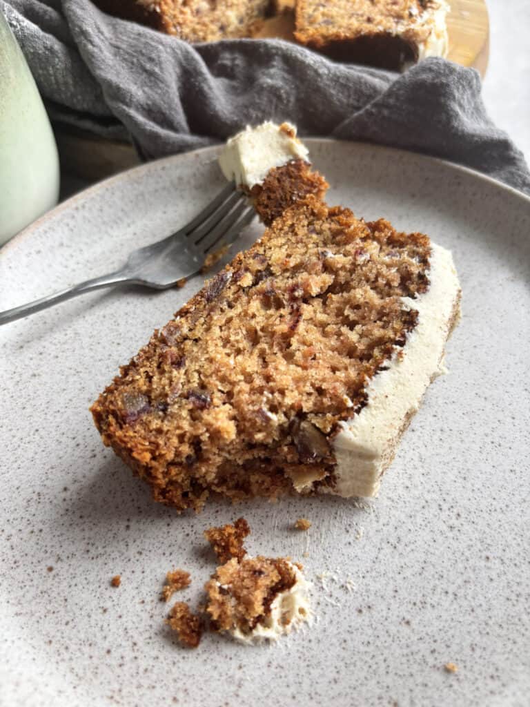 This vegan applesauce cake was first published in 2020 with a sticky maple glaze. I then updated it in early 2024 with the addition of a vanilla cinnamon buttercream topping (which you can see pictured). The original recipe remained the same, so I've included options for both toppings and you can choose which you like the look of the most.