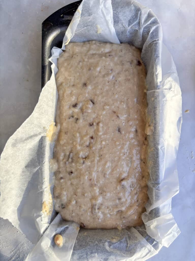 - Preheat the oven to 180° C | 350° F and line a 1-lb loaf tin with baking paper.