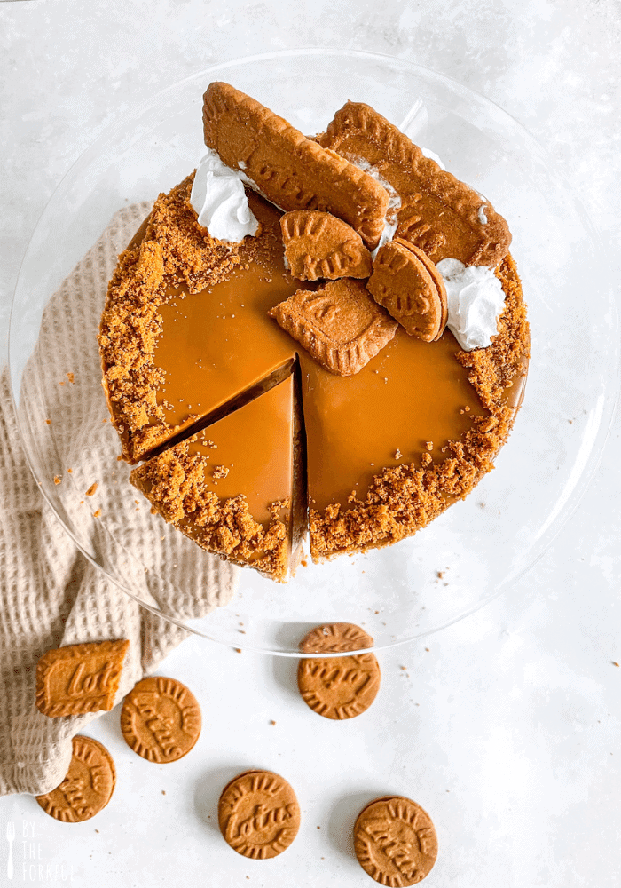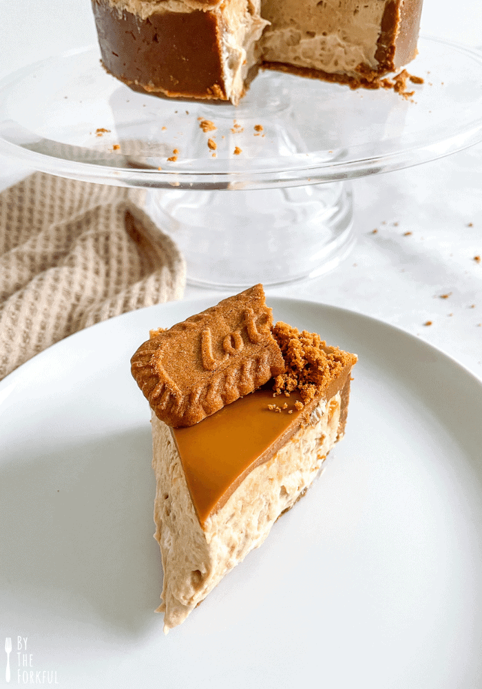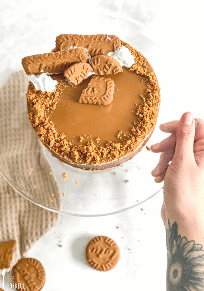 I also topped my cheesecake with crumbled lotus biscuits, vegan whipped cream, and lotus biscuits - packing in quite possibly the most lotus biscoff anyone has ever done before!