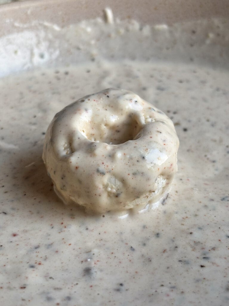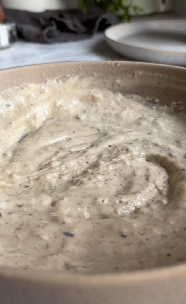 - In the third bowl, add the plant-based milk, flour, and spices and whisk until smooth to make your batter.