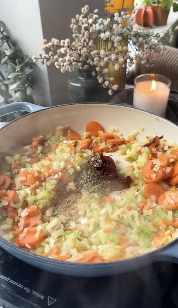 Step 1) Saute the veggies & make the soup base